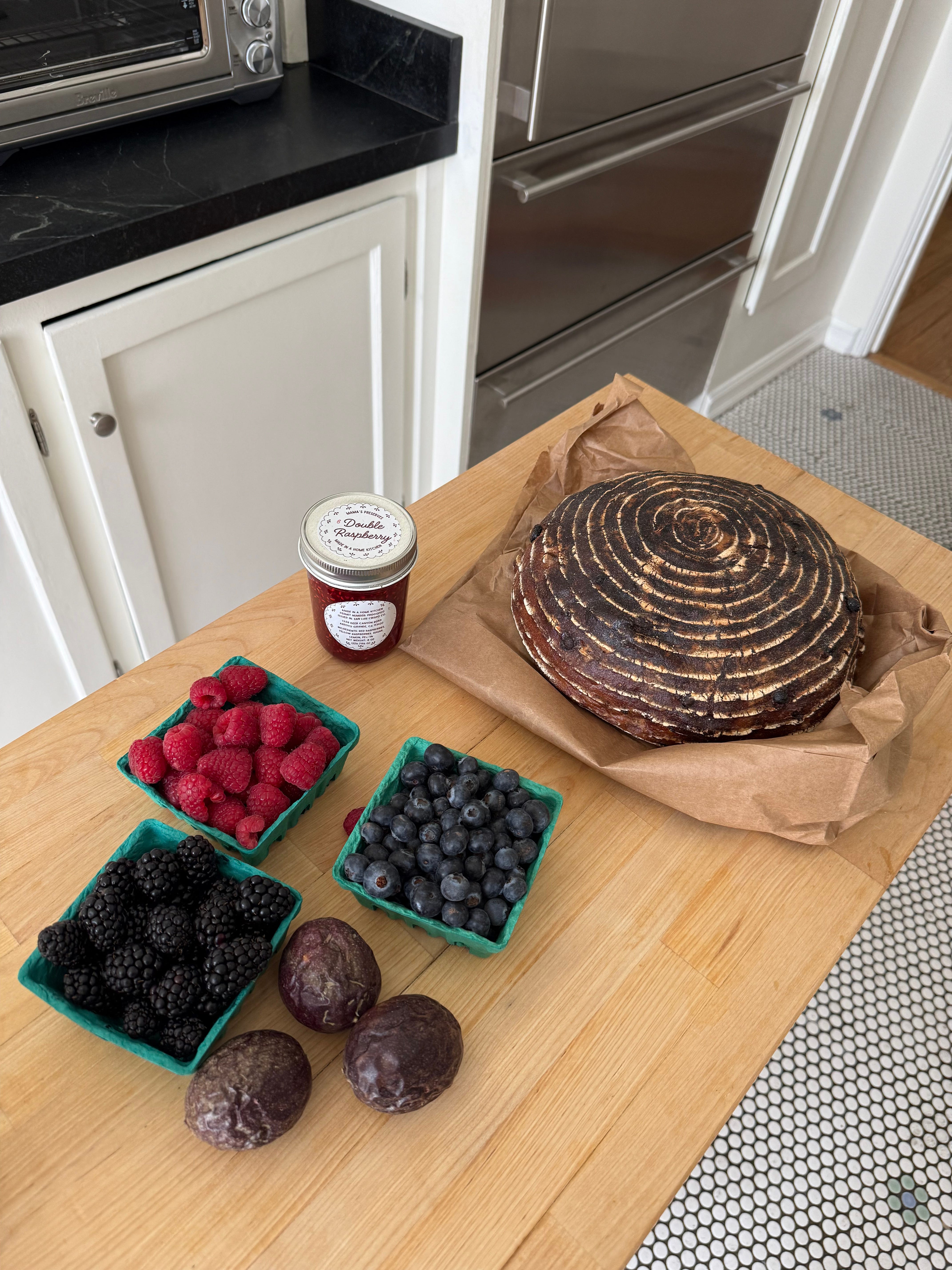 I was also in Malibu, and if ever I’m in the area, I always make a pit stop at Canyon Gourmet and take the scenic route. They were out of eggs, but I managed to pick up a fresh country loaf, berries, passion fruit, and homemade raspberry jam.
