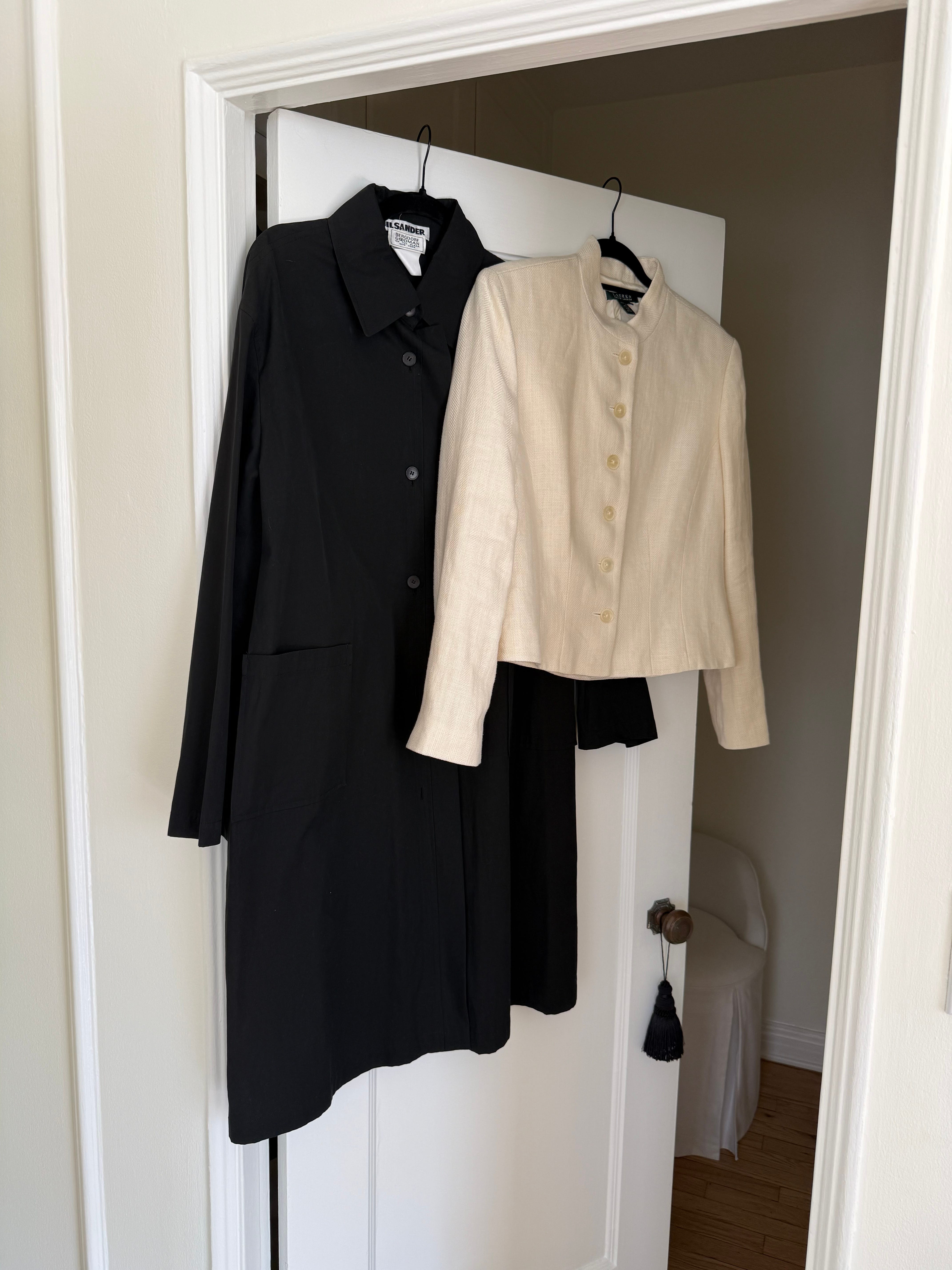 I also came across two stunning vintage Giorgio Armani scarves, one with fringe and one in cashmere. A Jil Sander cotton trench, and a Ralph Lauren collarless linen jacket. Consider this your sign to start your vintage hunt.